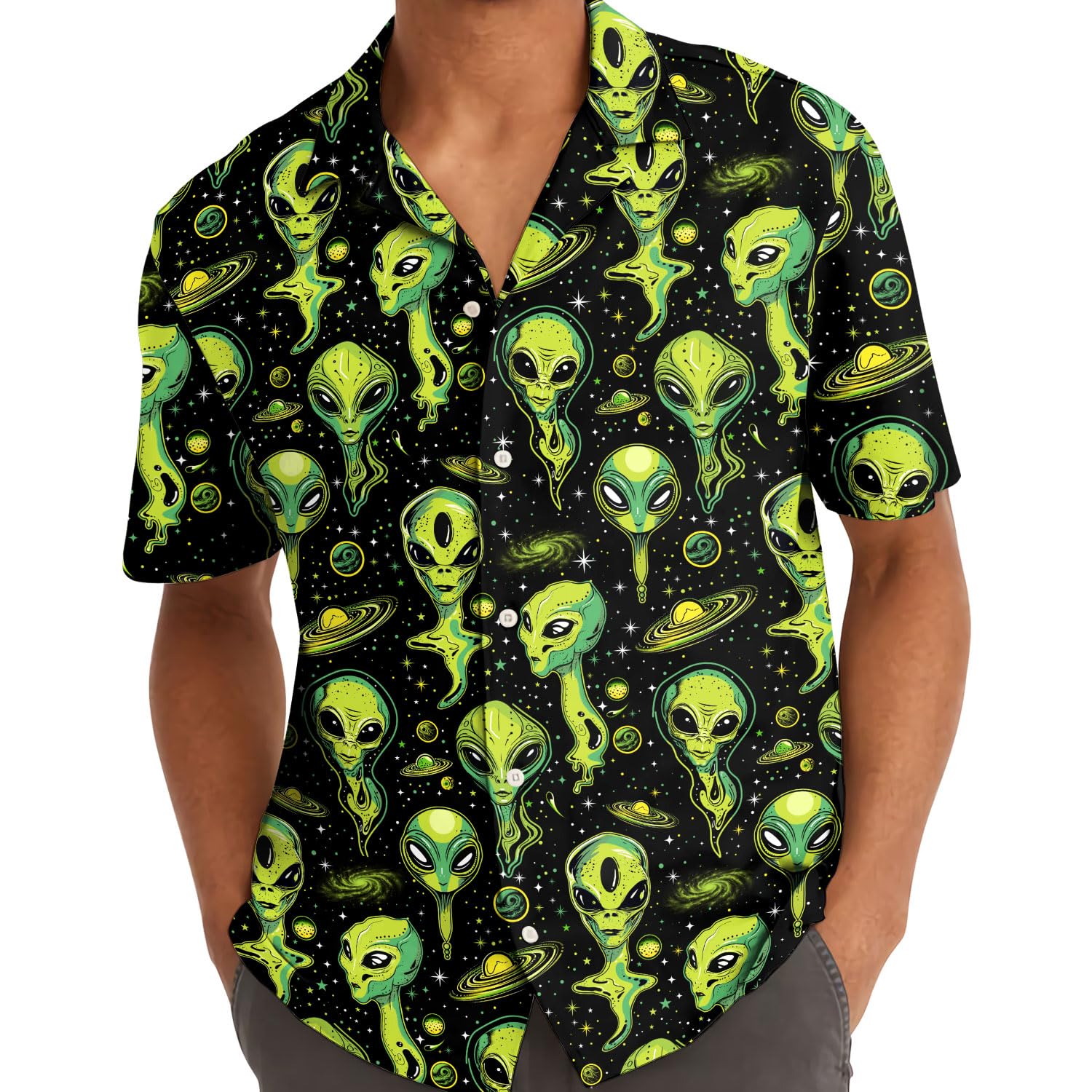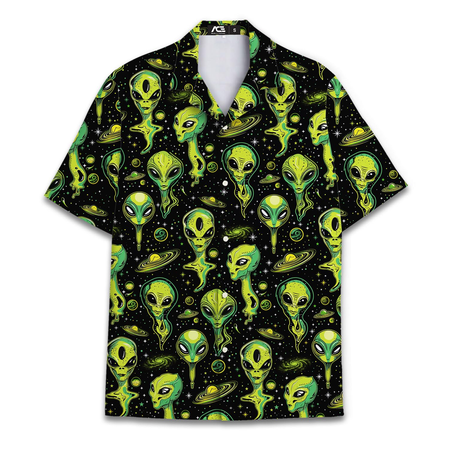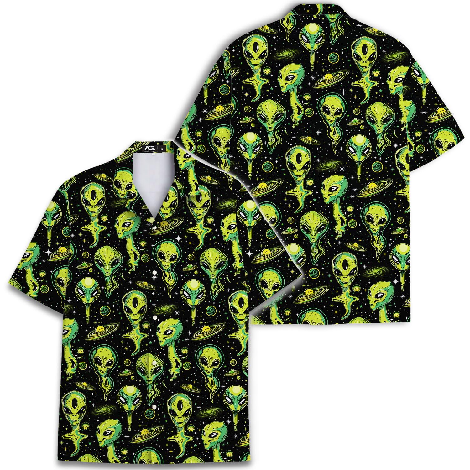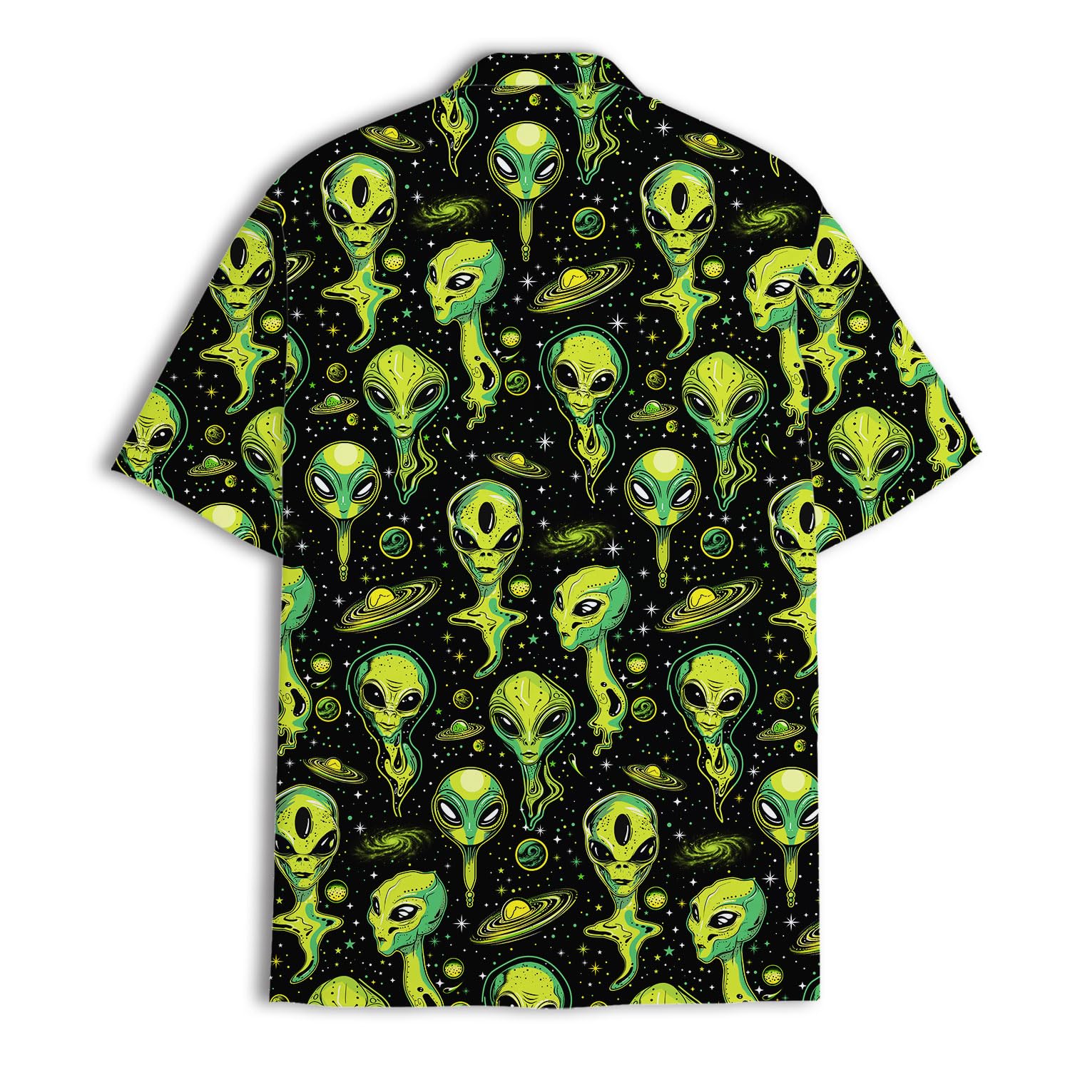 Neon Alien Pattern Hawaiian Shirt – Sci-Fi Space Lover Gift