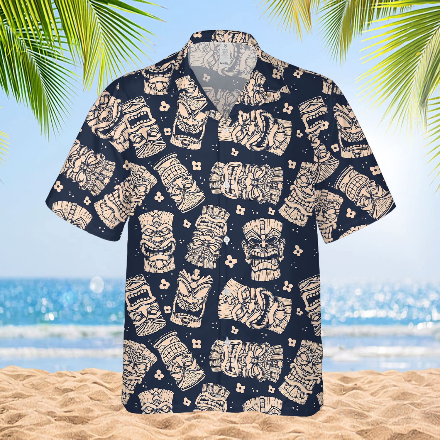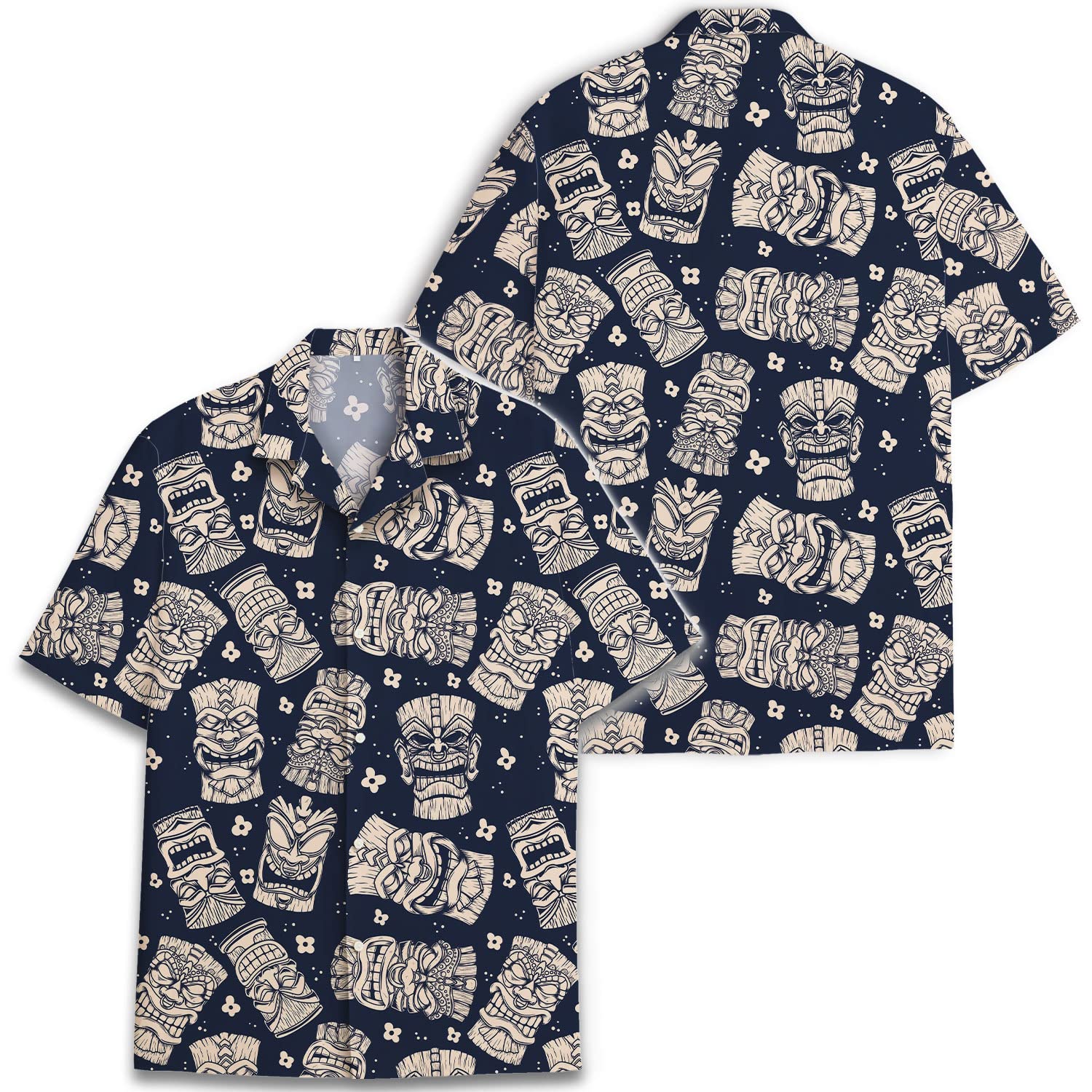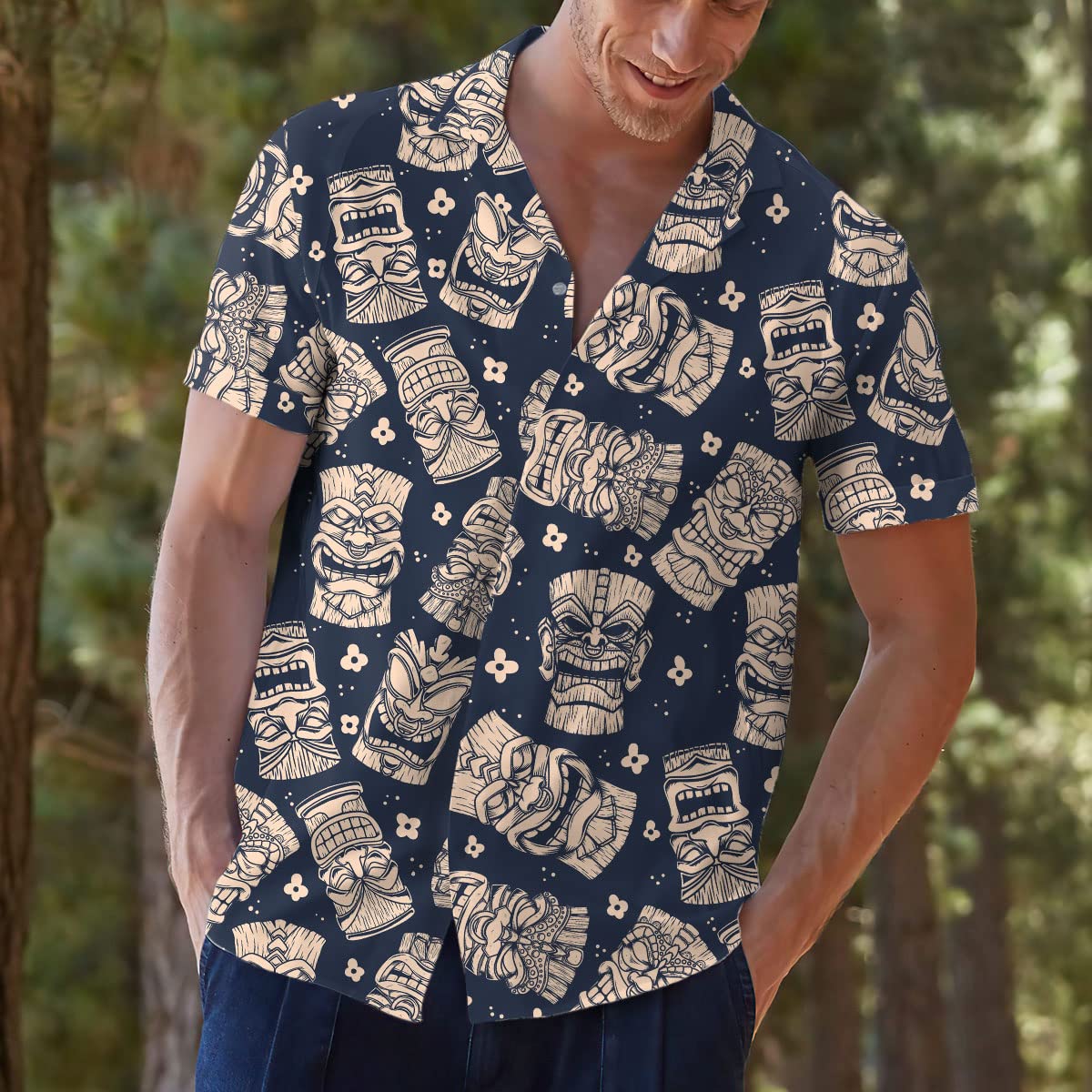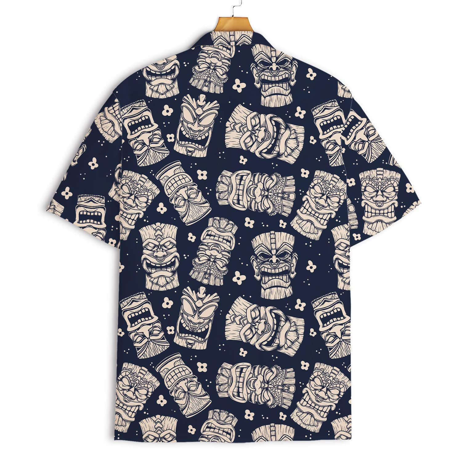Navy Tiki Hawaiian Shirt – Tribal Mask Aloha Print Shirt for Men