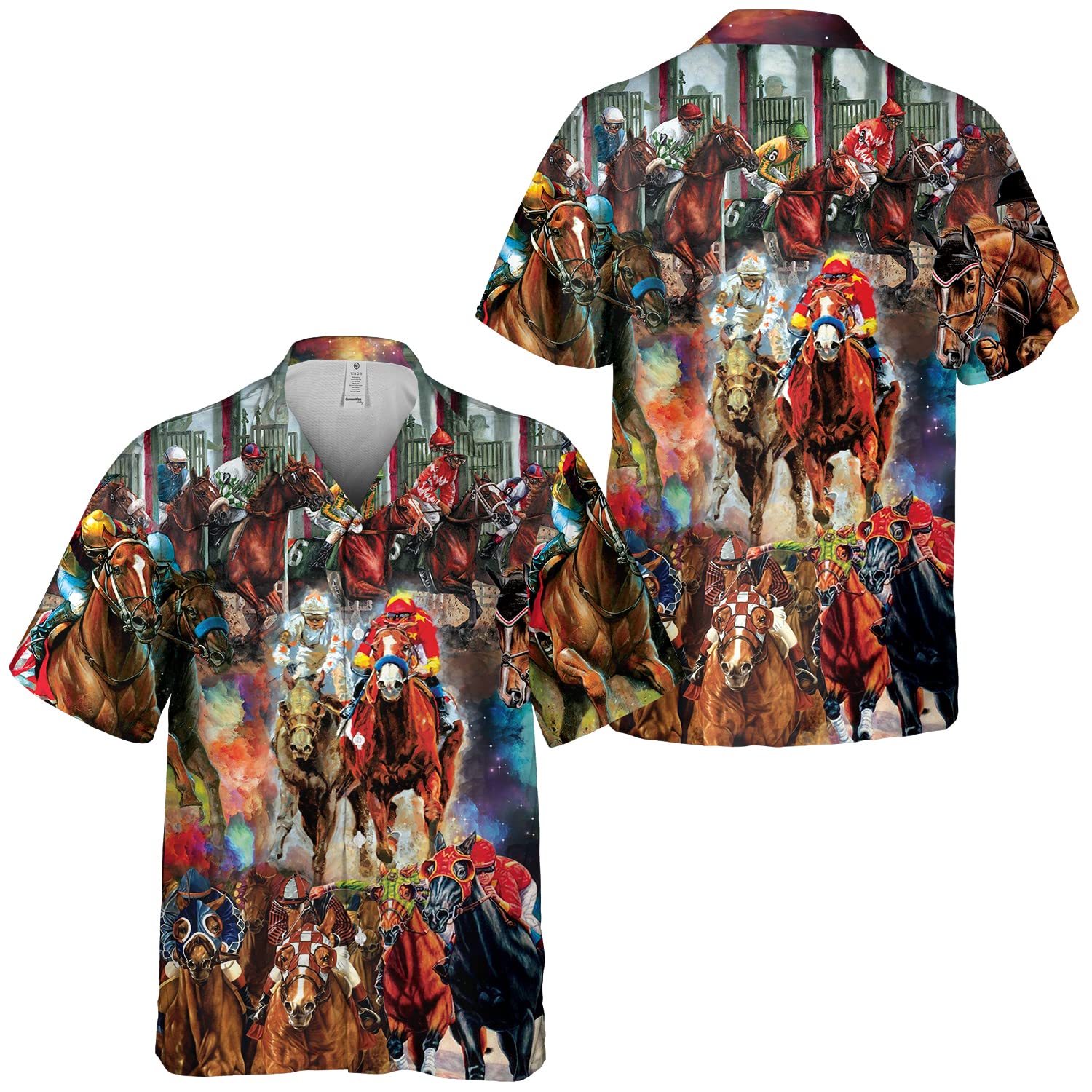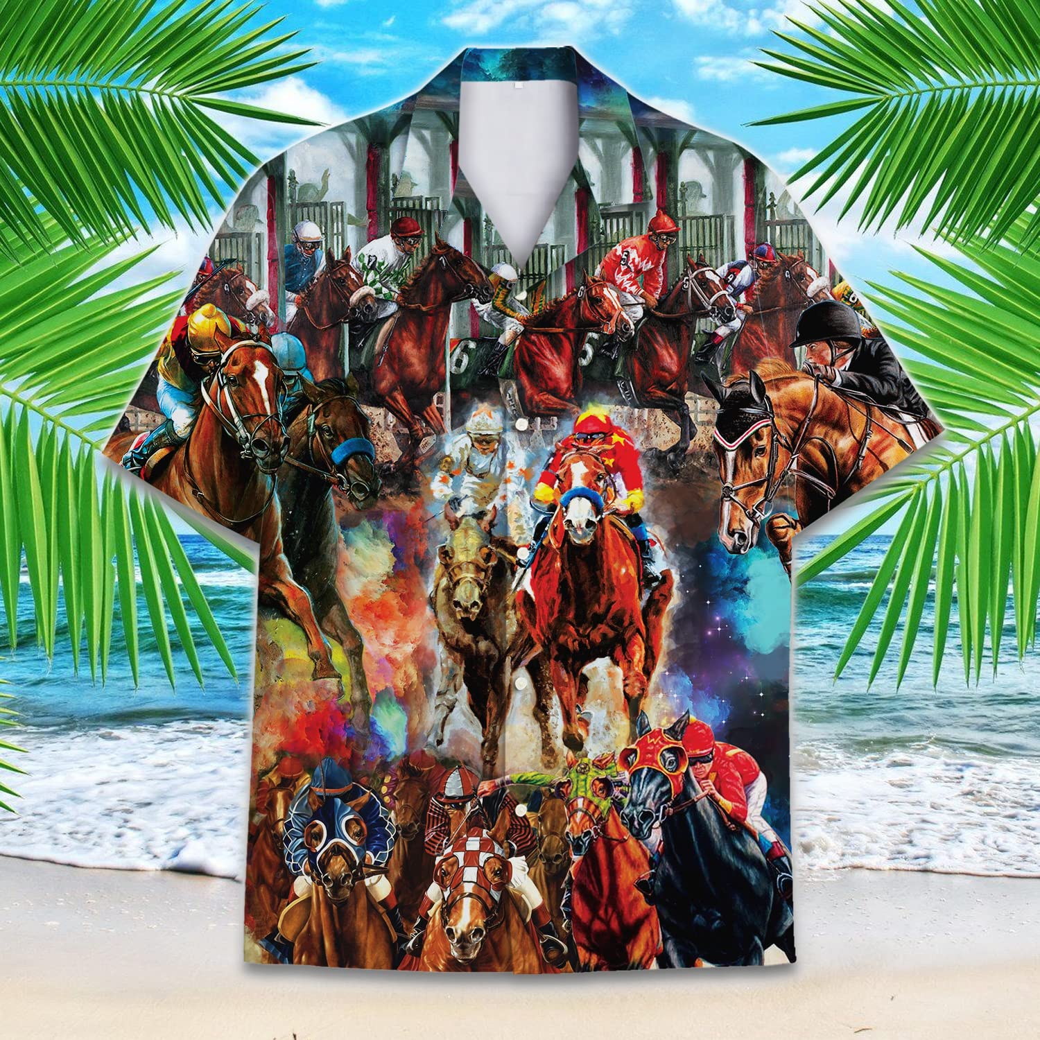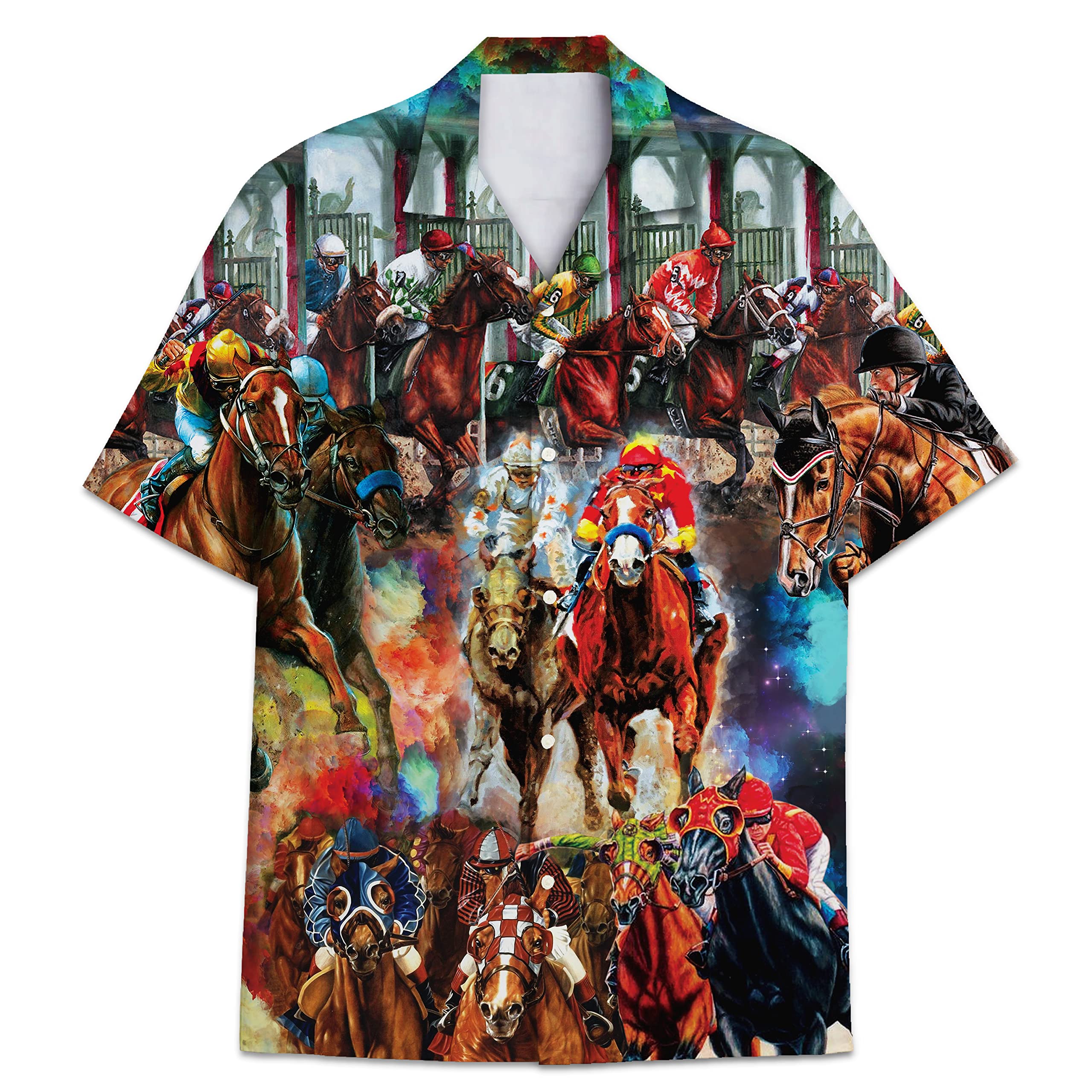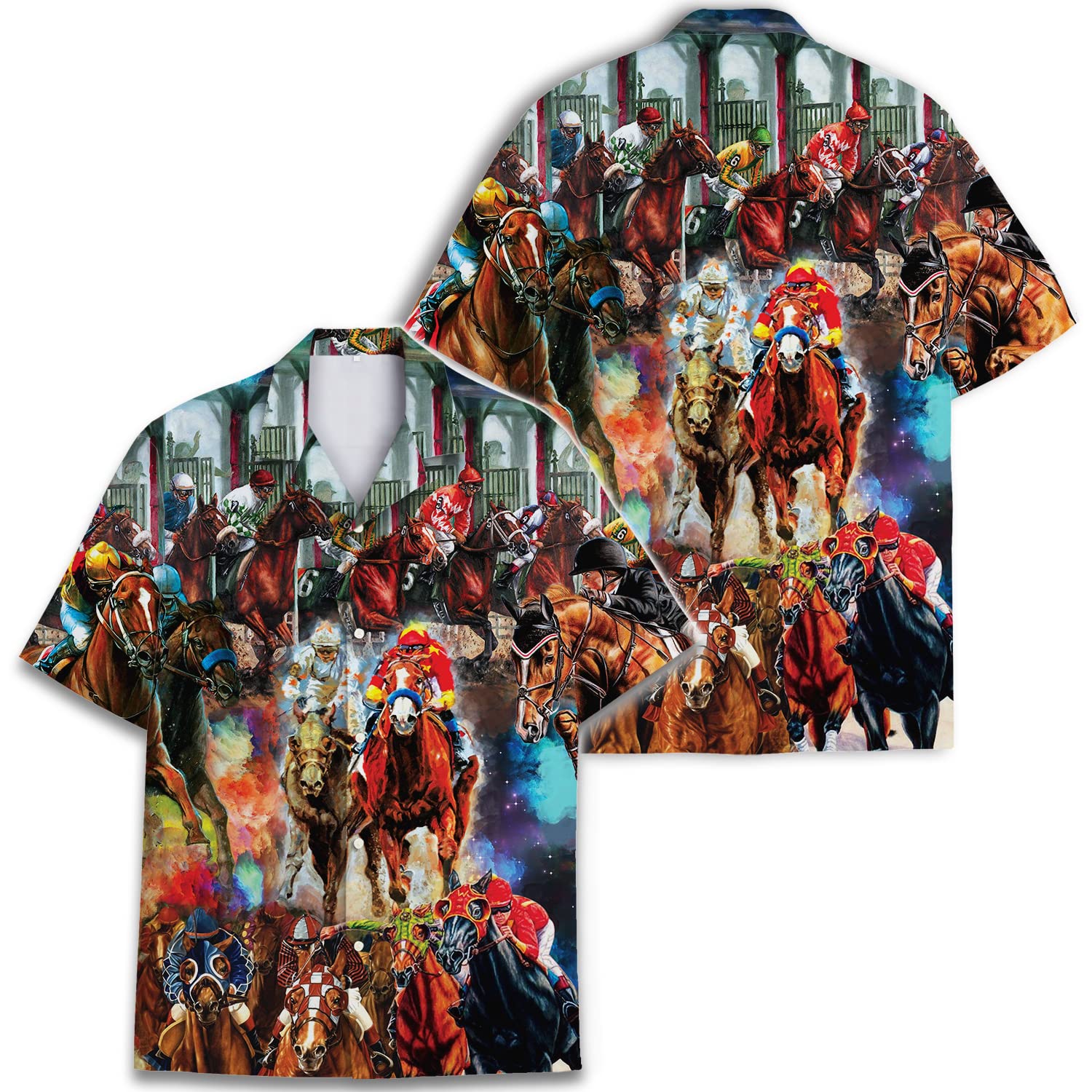 Horse Racing Hawaiian Shirt – Colorful Jockey Print Aloha Shirt for Men