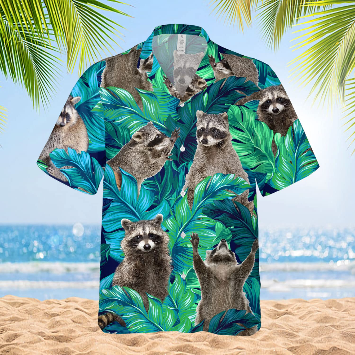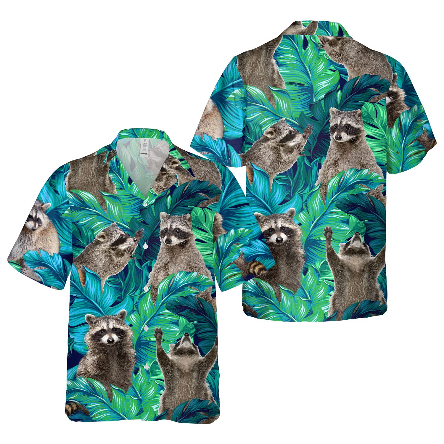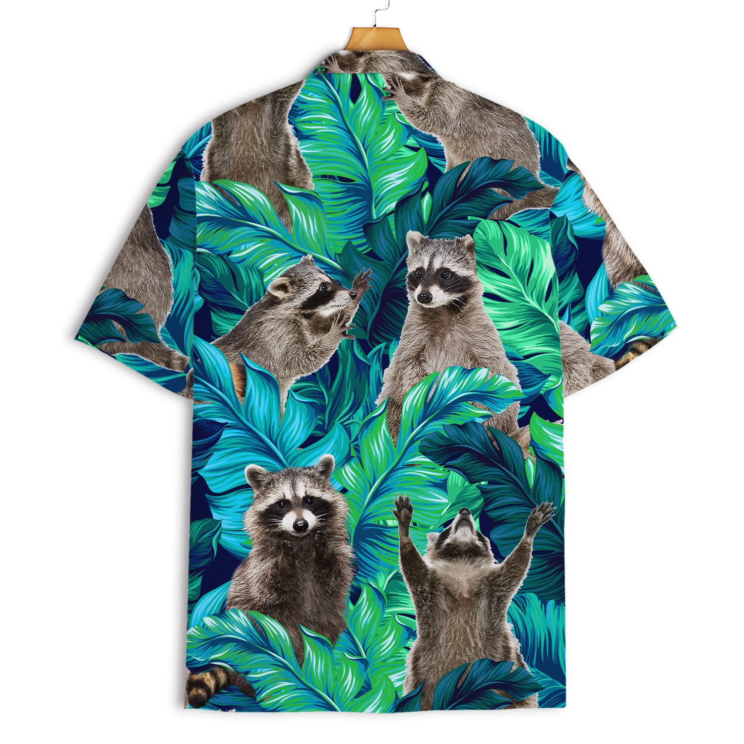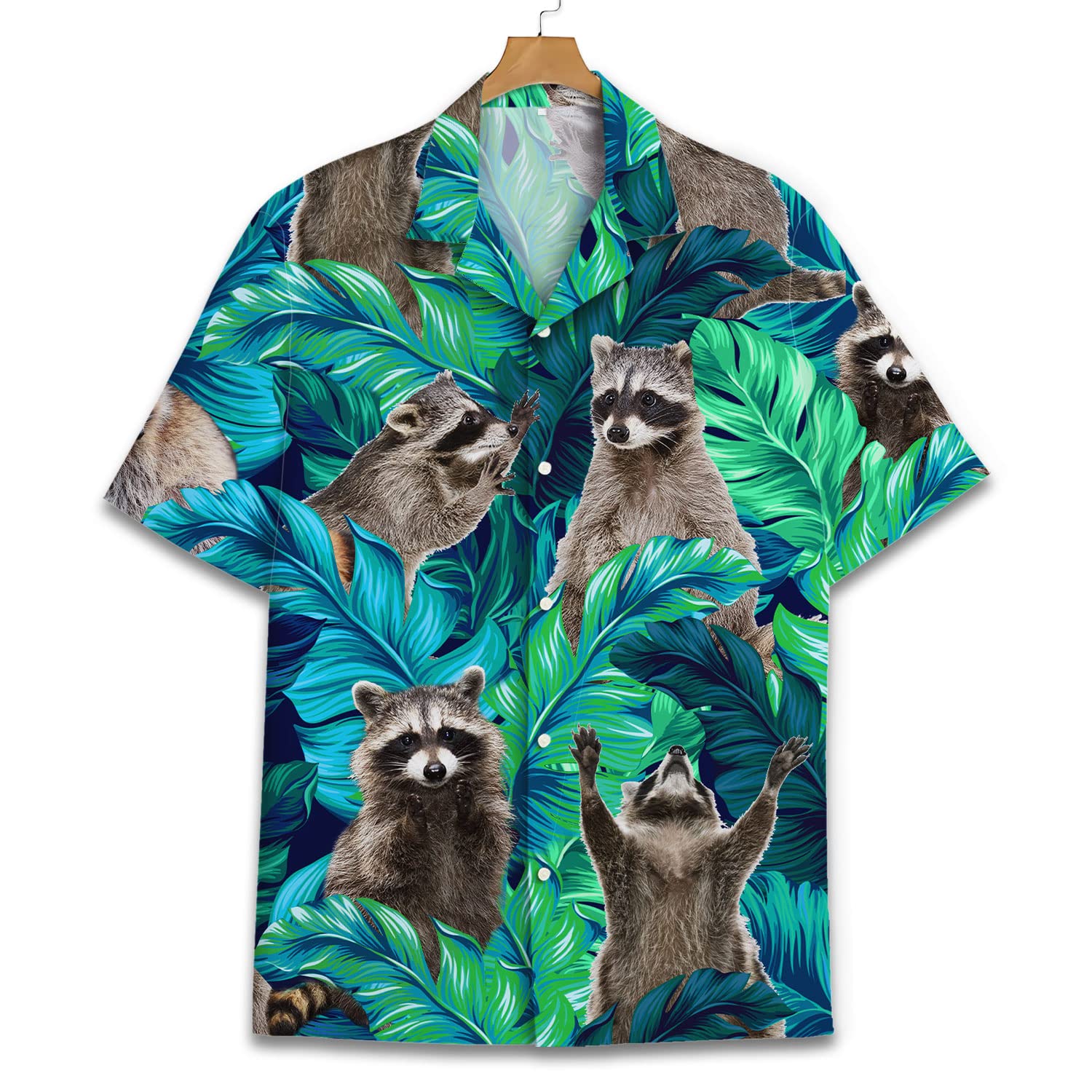 Funny Raccoon Hawaiian Shirt – Green Tropical Leaf Print Aloha Shirt