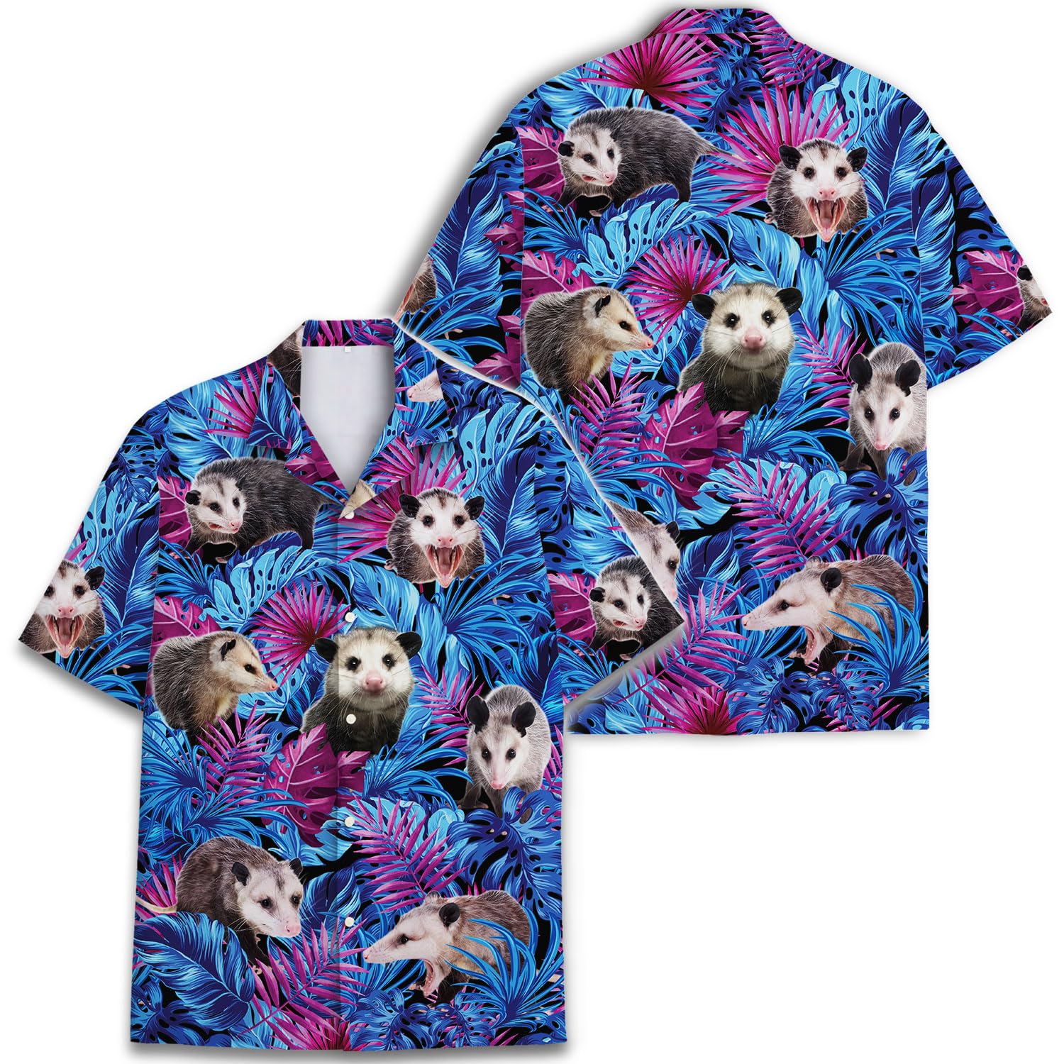 Funny Possum Hawaiian Shirt – Retro Opossum Print Aloha Party Top