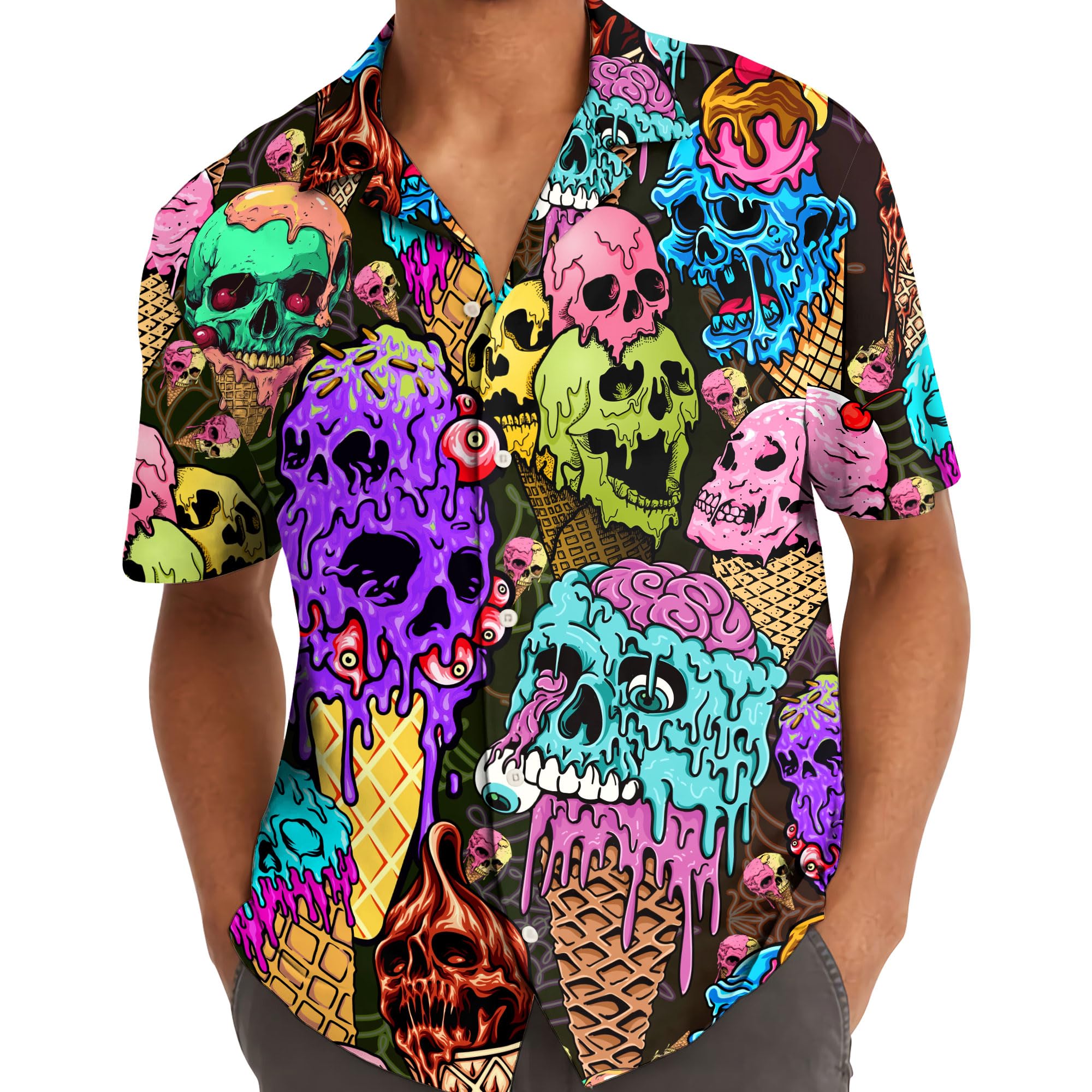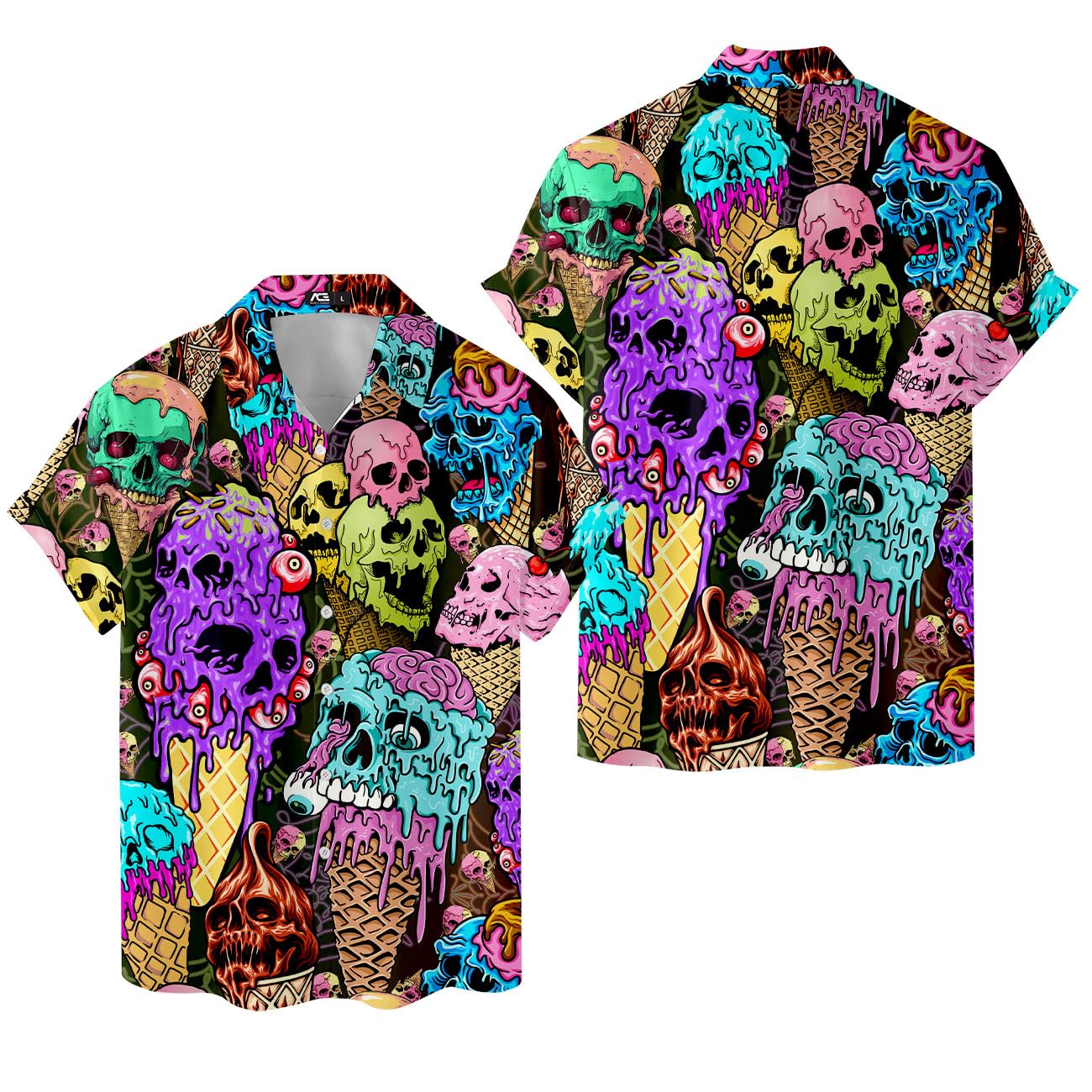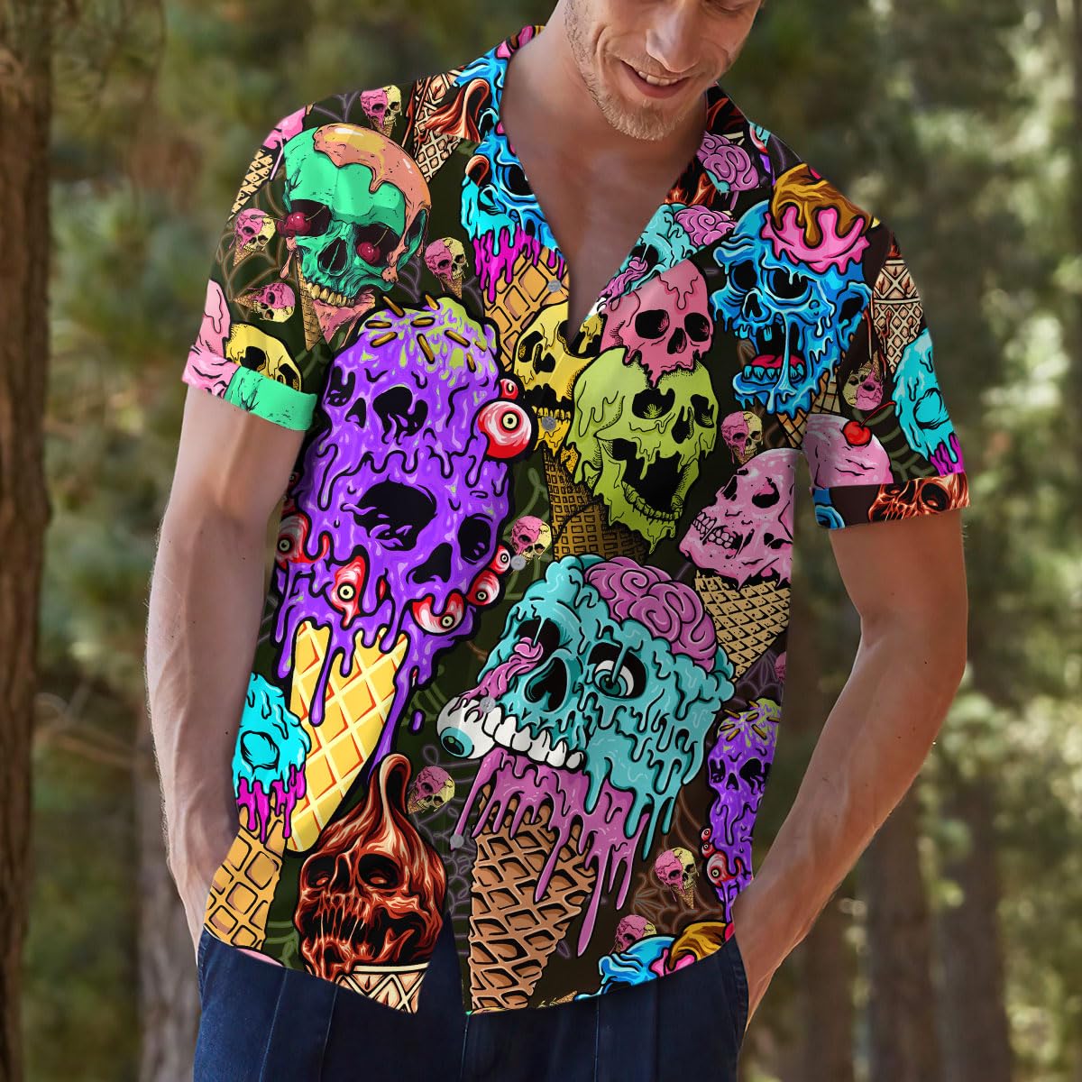 Creepy Ice Cream Skull Hawaiian Shirt – Halloween Horror Style Aloha Shirt