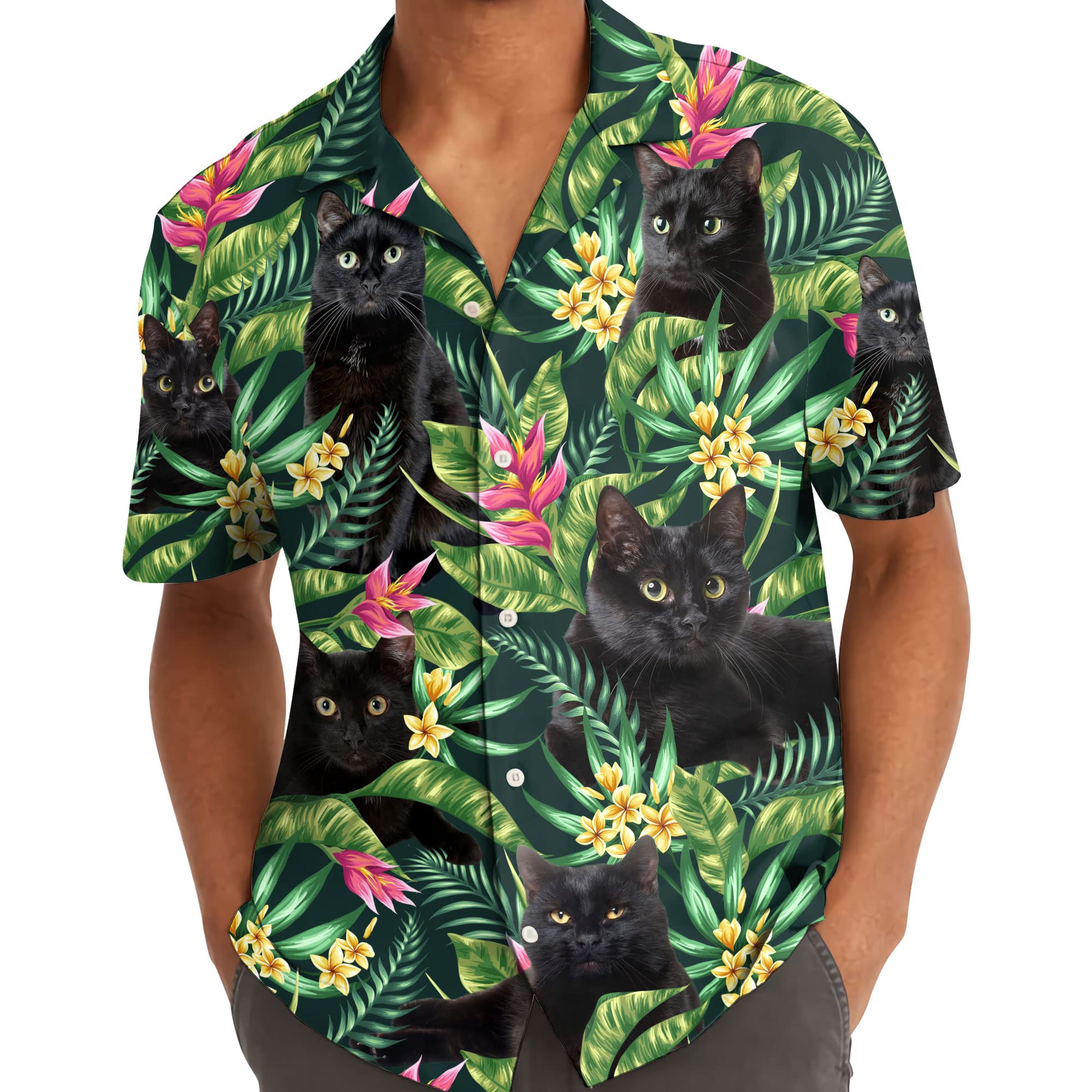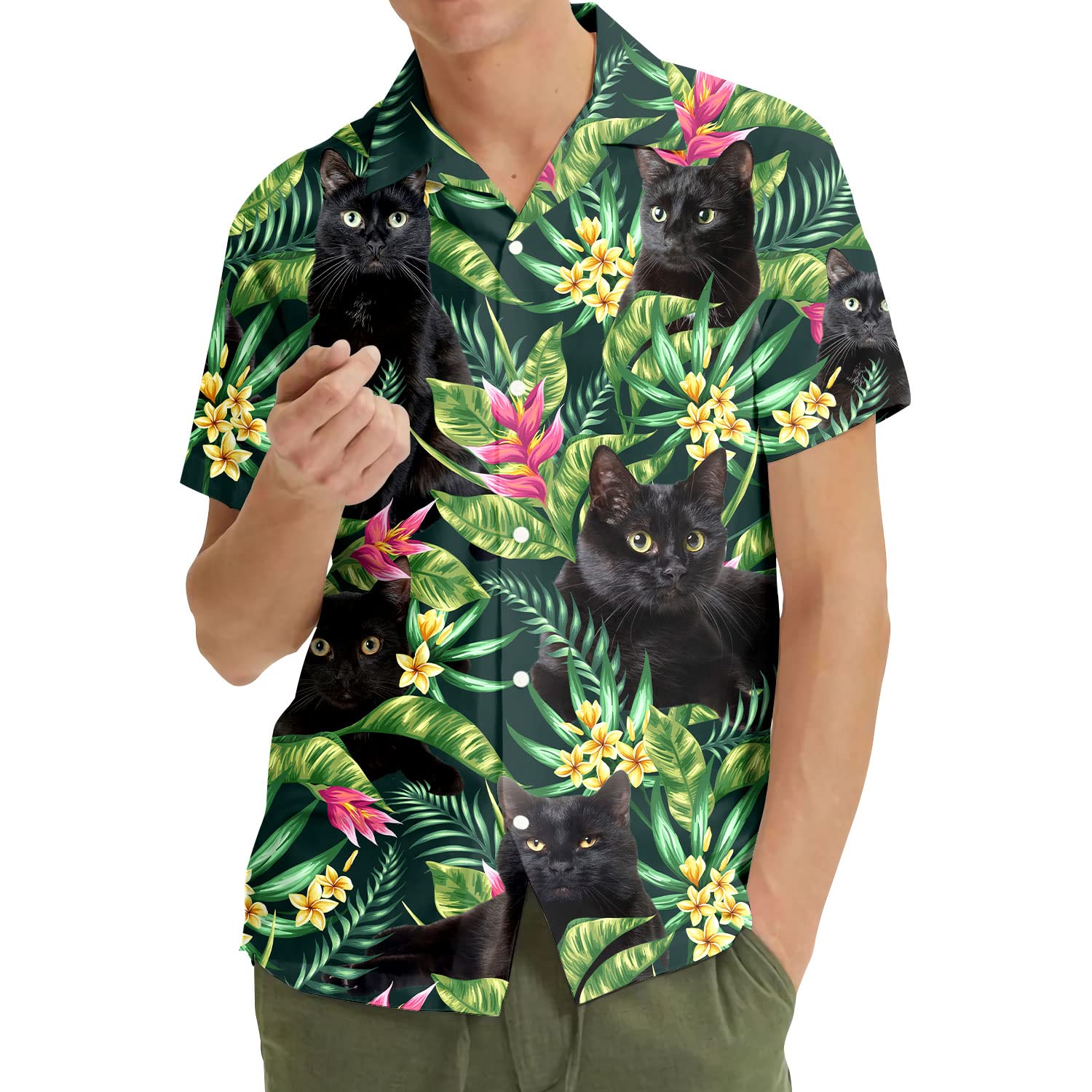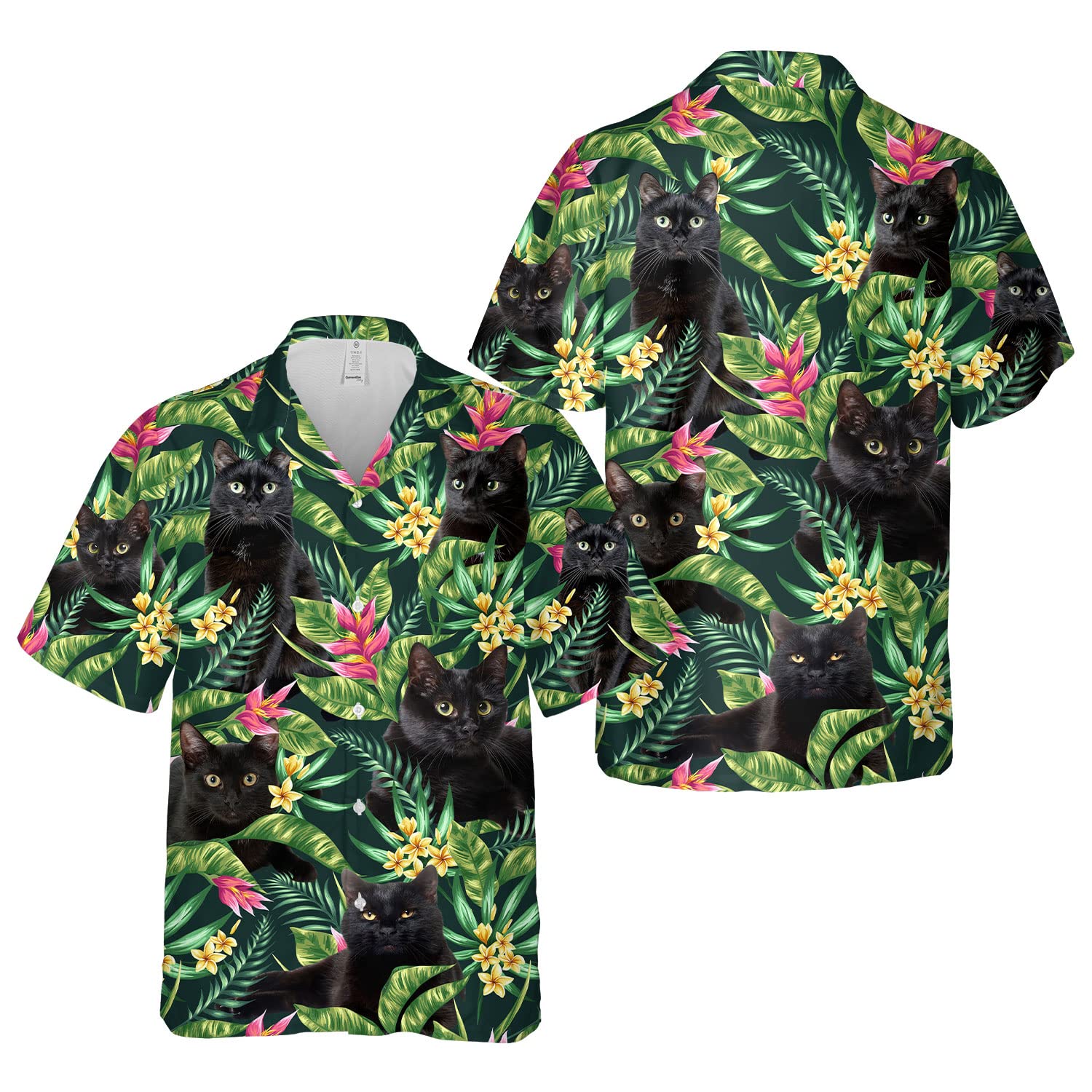 Black Cat Hawaiian Shirt – Tropical Jungle Aloha Shirt for Cat Lovers