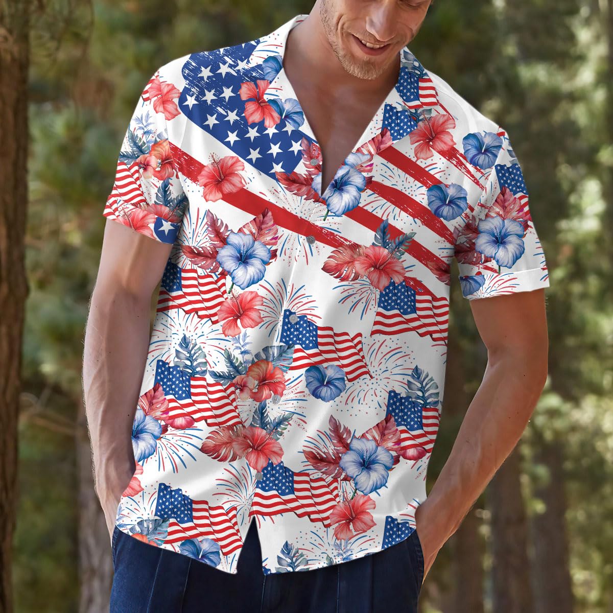 American Flag Fireworks Hawaiian Shirt – Patriotic 4th of July Style